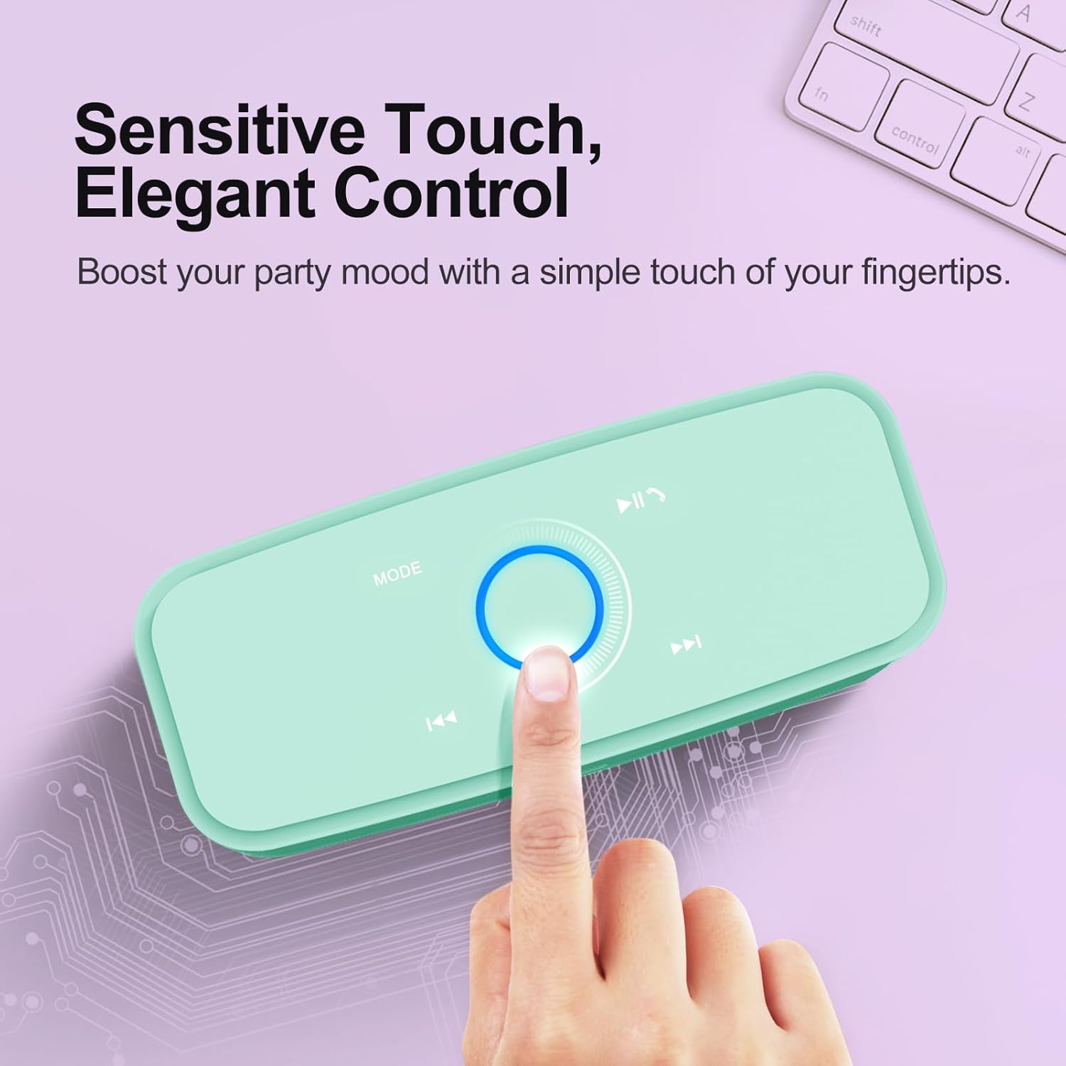 Capacitive Touch Control With the user-friendly touch control, you can amplify the mood and energy of the party. Change tracks, volume and pair effortlessly with just a simple touch.