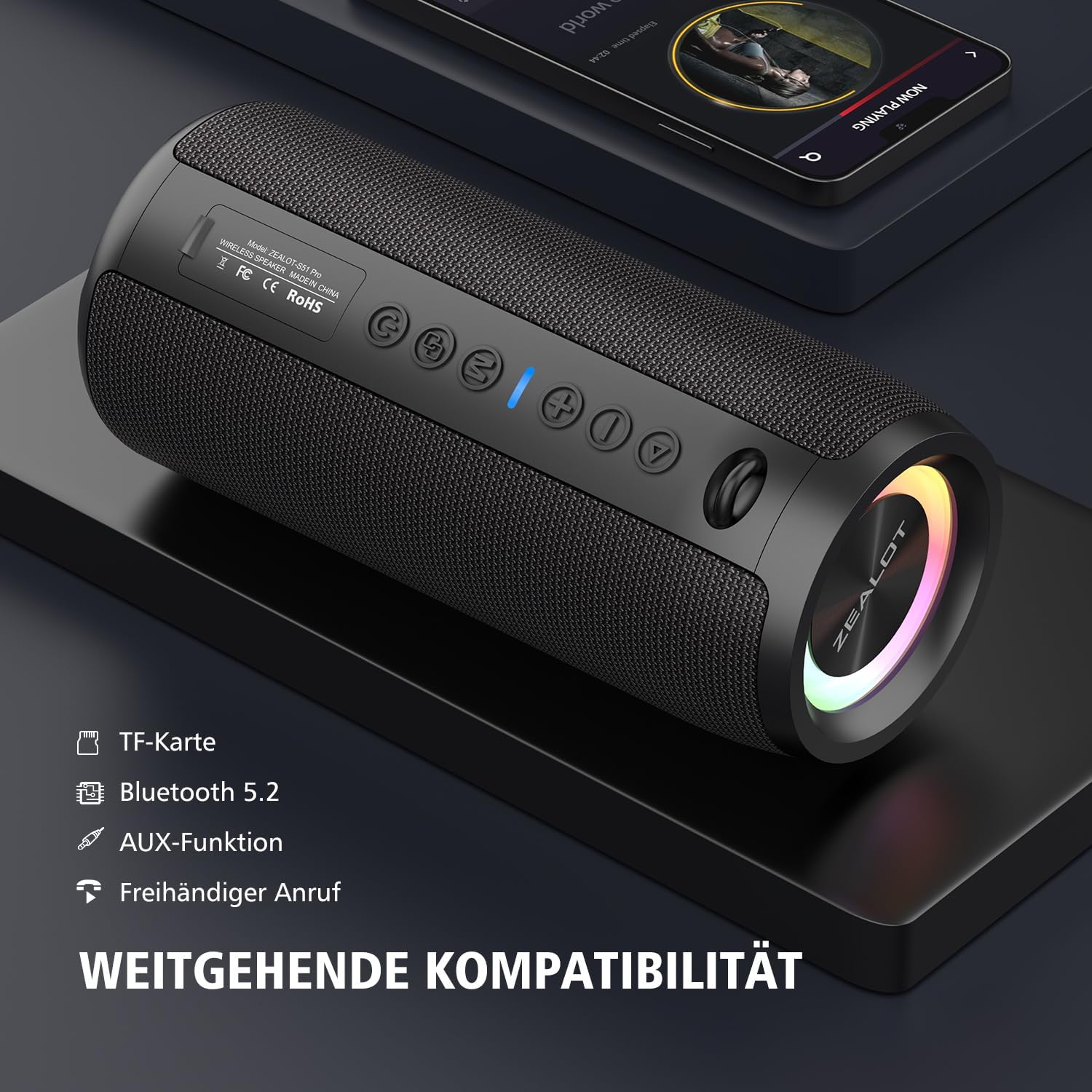 Strong Bluetooth 5.2 signal: ZEALOT S51 Pro Bluetooth speaker can connect in any difficult condition and the signal is not disturbed. The antenna design with Bluetooth 5.2 offers a wireless range of 10 metres and an efficient connection to any Bluetooth device. The Bluetooth 5.2 chip reads the playback of music lists easily. It can connect laptop, phone, MP3, phone etc. and other non-Bluetooth devices with 3.5 mm audio jack.
