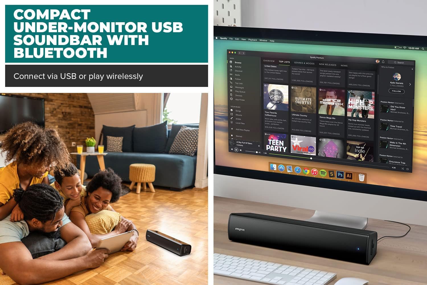 - Удобство на използване: Можете да свържете саундбара си към компютъра си чрез USB или Bluetooth 5.3, за да използвате своите любими музикални платформи и стрийминг услуги.
