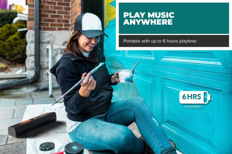 - Дълготрайна батерия: Саундбарът CREATIVE Stage Air V2 има вградена батерия, която може да издържи до 6 часа на едно зареждане.