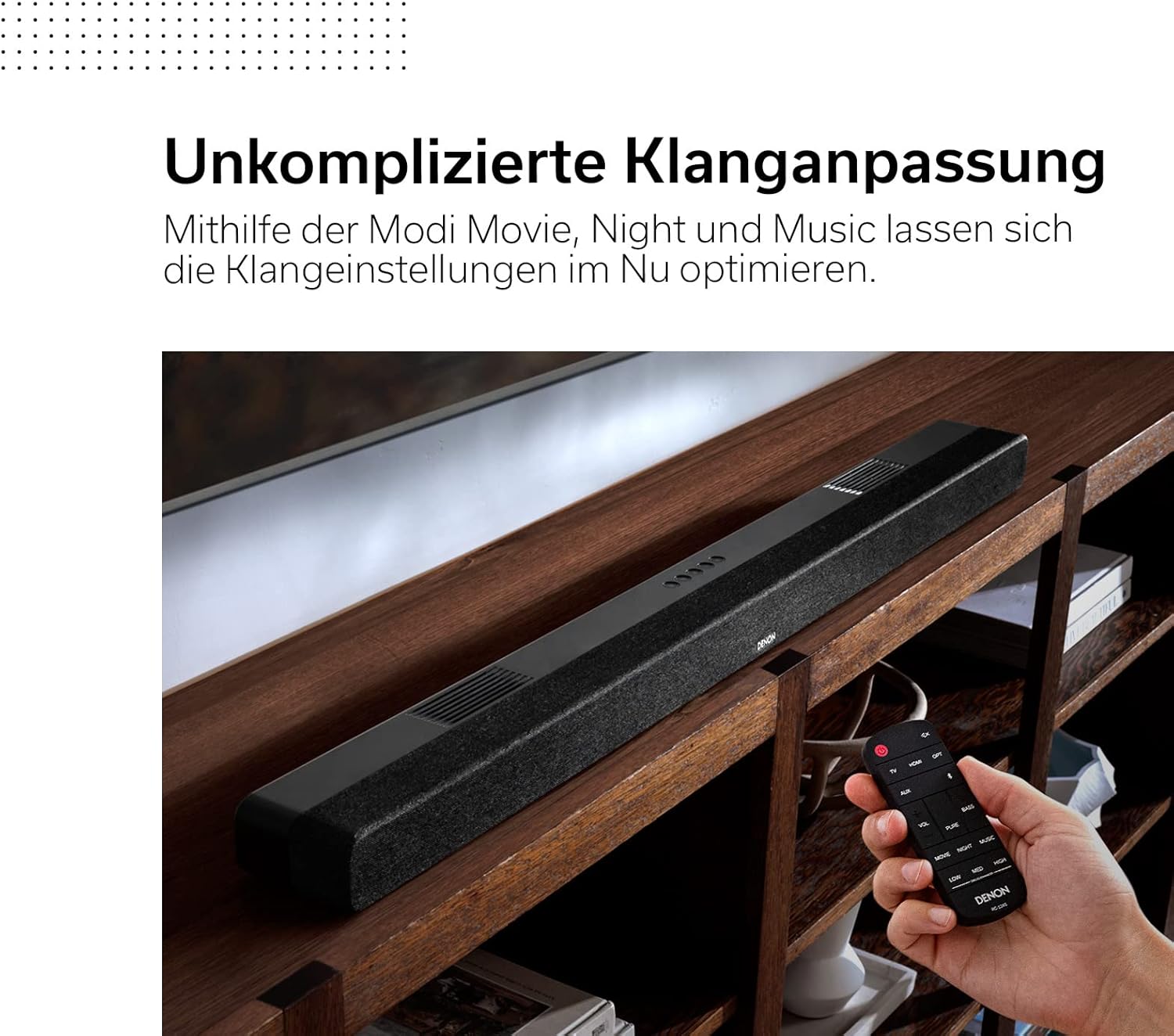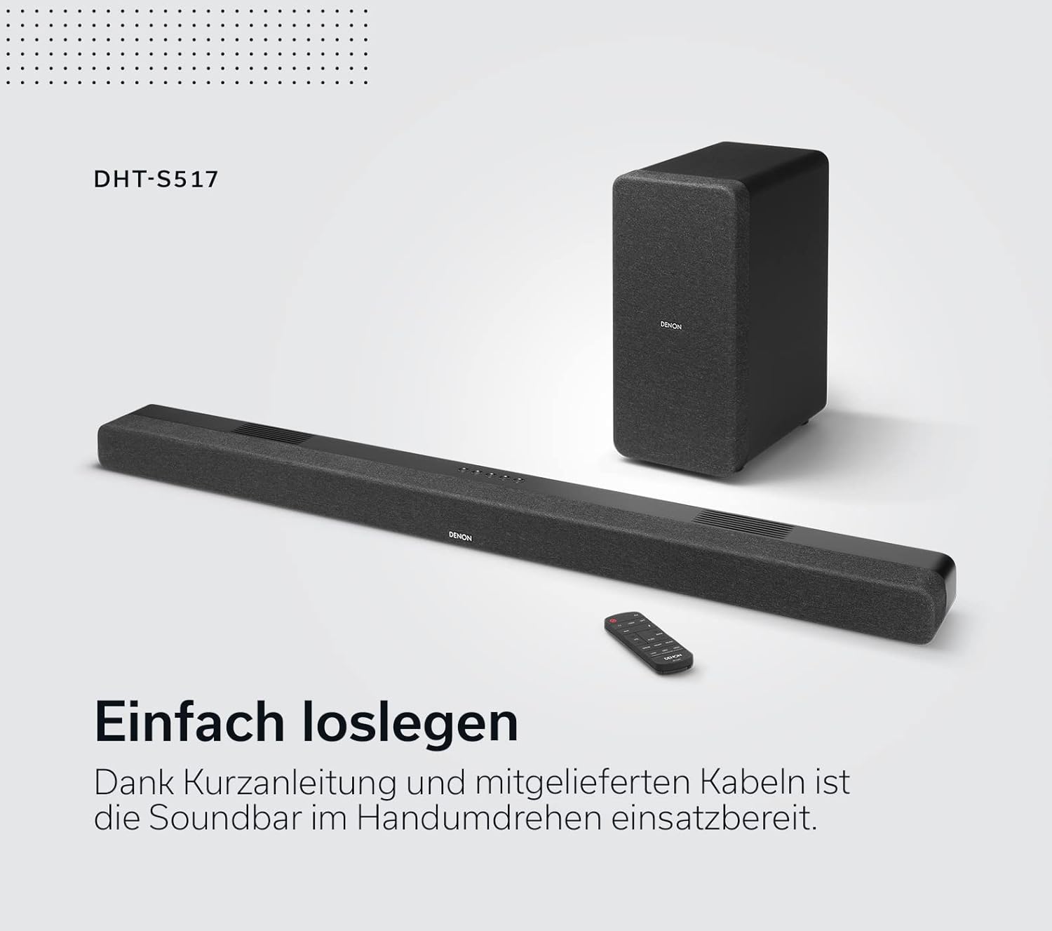 Dolby Atmos sound system – enjoy TV shows, movies and music with high-quality Denon sound and Dolby Atmos with the Denon Soundbar DHT-S517