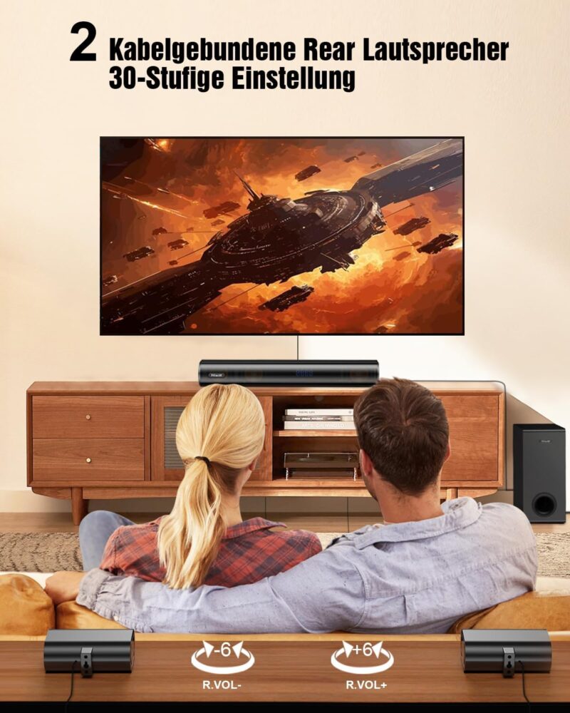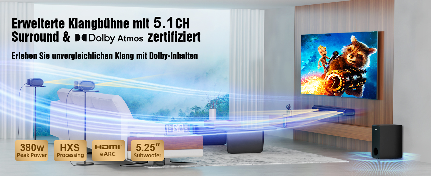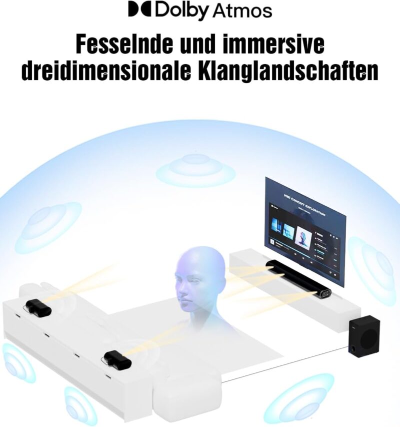 - Тип: 5.1 канален саундбар с Dolby Atmos и субwoofer