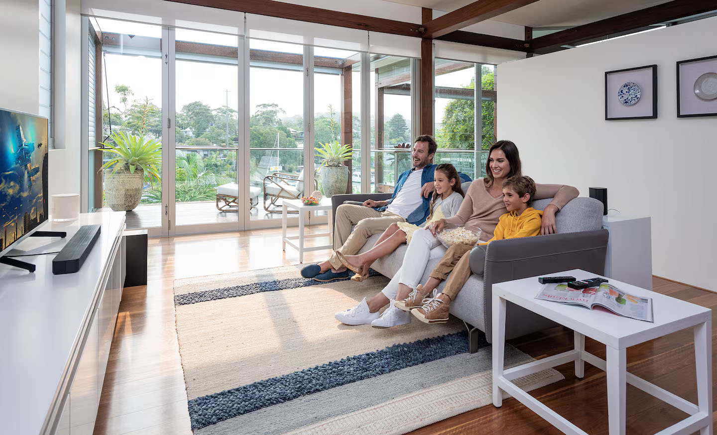 • Лесно свързване с телевизора чрез HDMI ARC или Bluetooth