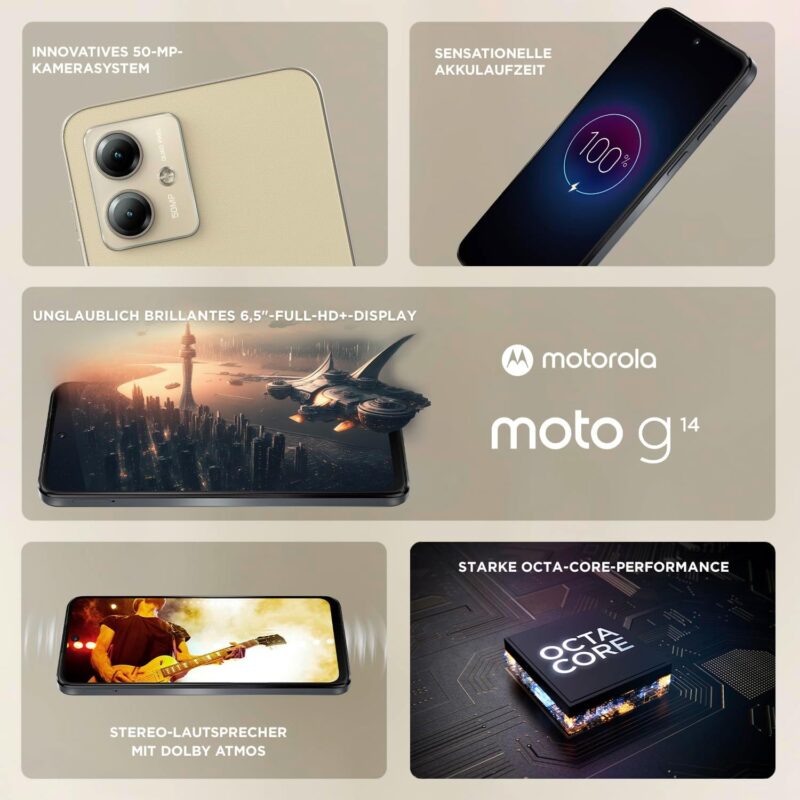 Бъдете първи, оставили отзив “Смартфон Motorola Moto g14 6.5 Inch FHD+ Display 50 MP Dual Camera 4 128GB Butter Cream”