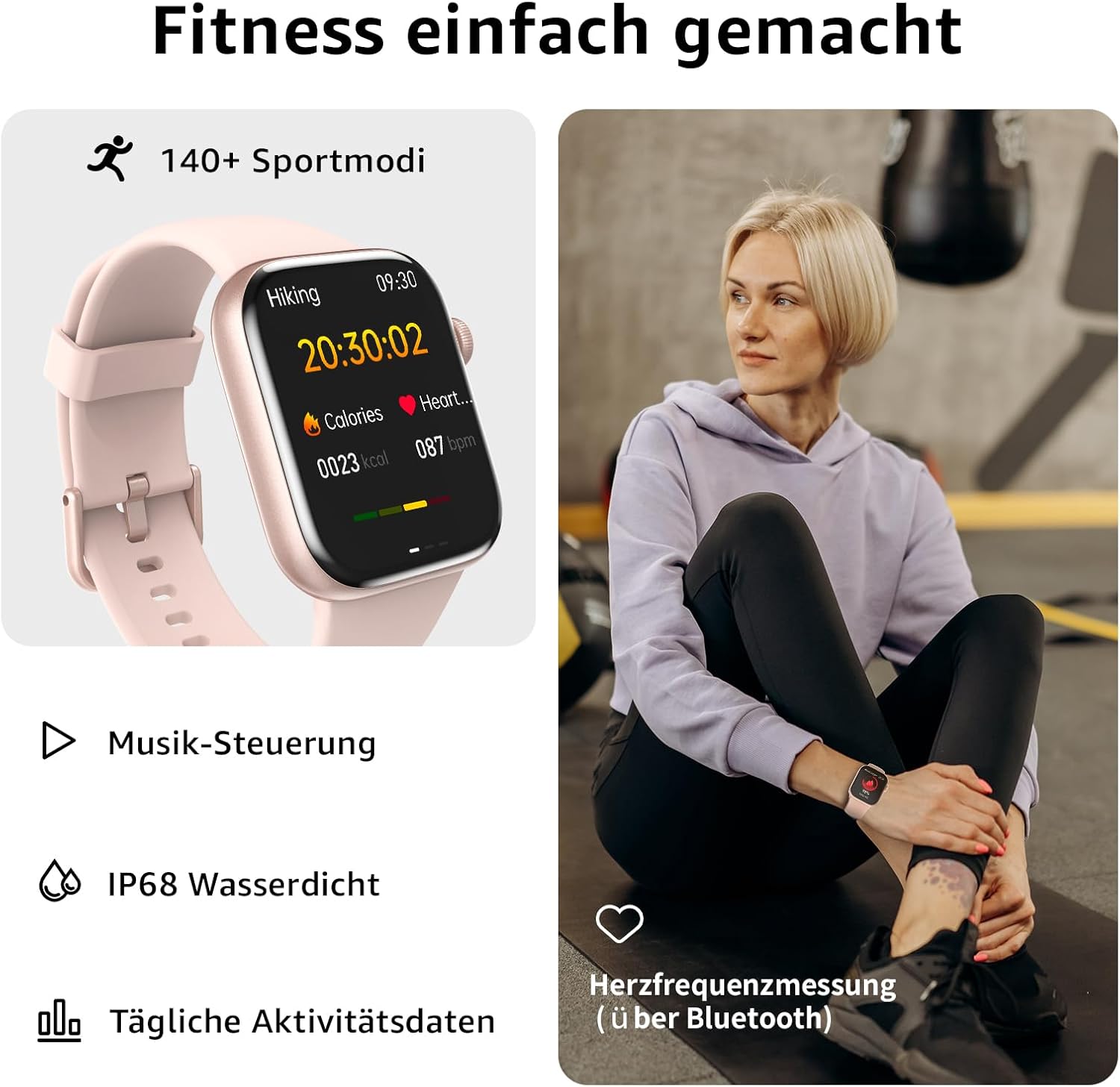 140+ different fitness modes: The smart watch supports 140+ professional and advanced workout modes, including yoga, swimming, HIIT, running, rope jumping, cycling, badminton, football, etc., to make your training more scientific and diverse. This pedometer watch can track your activity data such as steps, active minutes, distance and calories burned, so you can monitor your training status in real time.