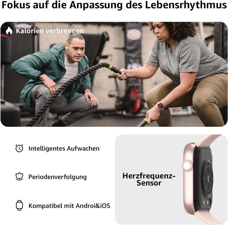 1.85 inch full touch screen and 100+ adjustable dials: The AcclaFit women’s smartwatch has a 1.85 inch full touch LCD screen, which offers first-class image quality for excellent visual effects. Whether in strong light or dark environment, the screen brightness is adjustable so you can easily read the time and data. At the same time, you can choose from over 100 dial styles via the mobile application or choose your mobile phone photo to display beautiful landscapes and show your personality.
