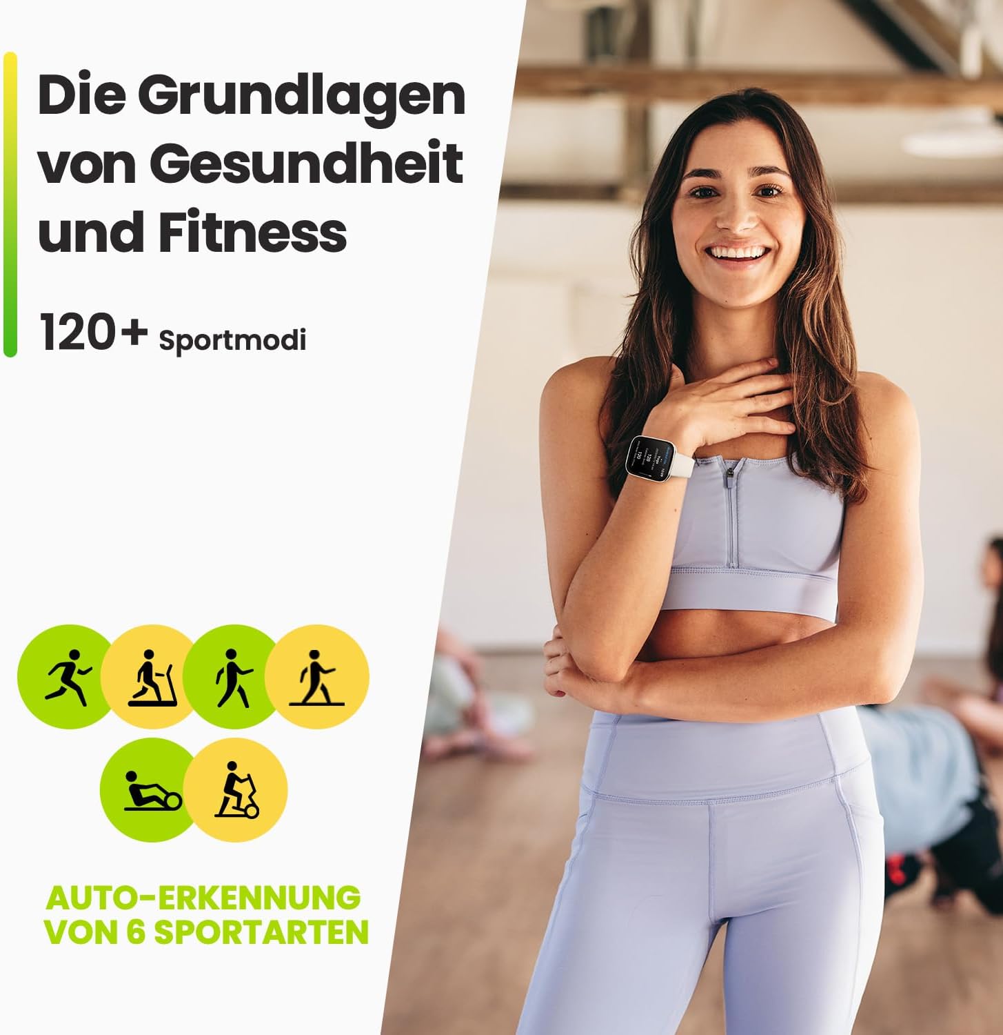 RECORD HEALTH, STEPS AND CALORIES: Move with a choice of over 120 sports modes. The watch can also monitor heart rate, blood oxygen levels, stress levels and sleep quality, reminding you of sedentary activities and the menstrual cycle.