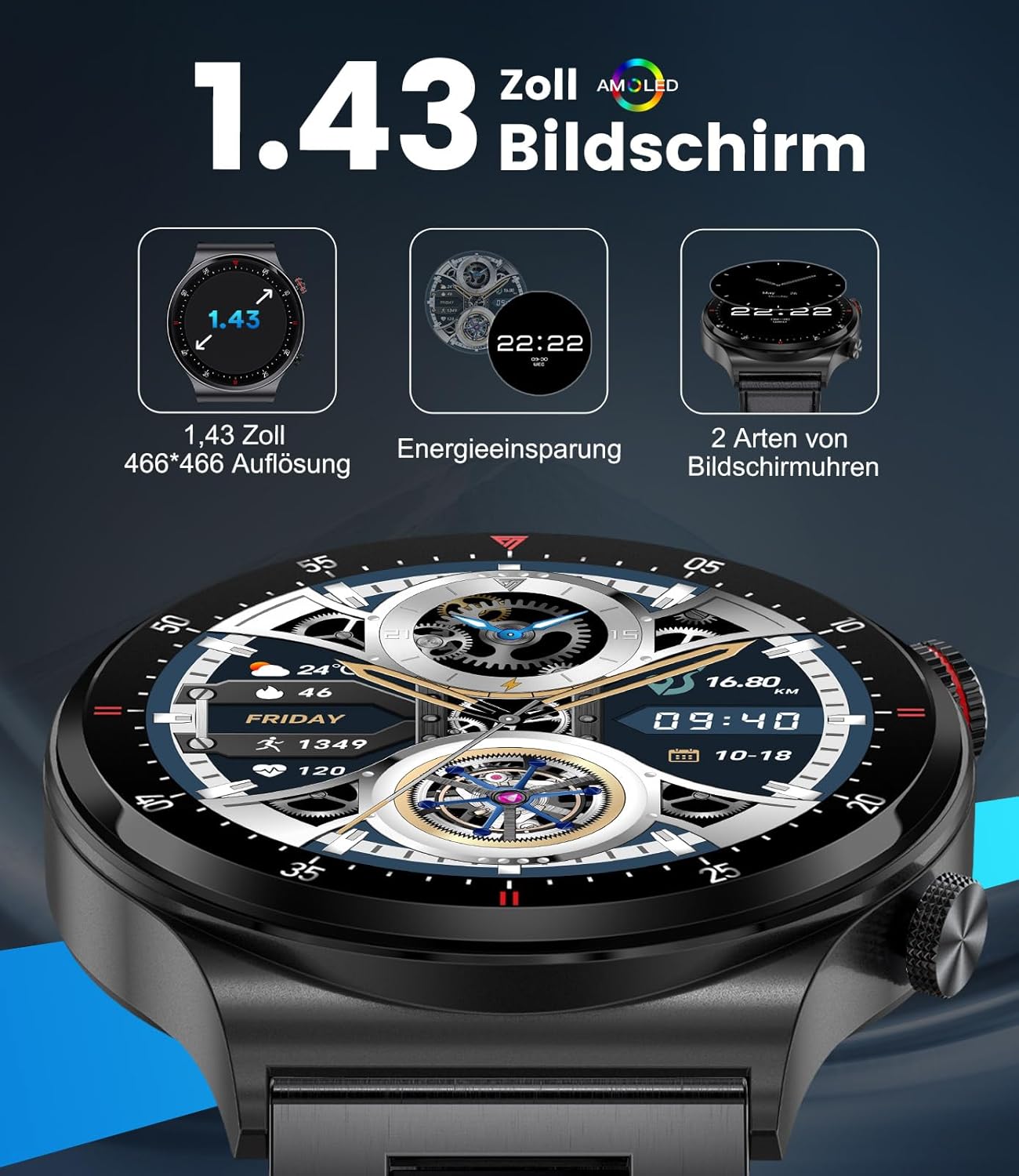 Продукт:Смарт часовник BANGWEI SML2 PRO I Men's Smart Watch 1.43 Inch AMOLED Black