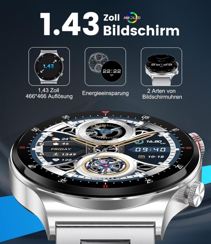Смарт часовник BANGWEI SML2 PRO I Men’s Smart Watch 1.43 Inch AMOLED Silver