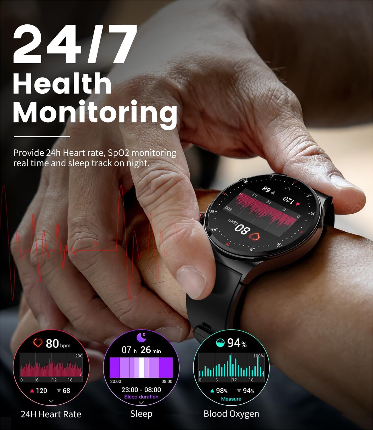 Perfect health monitoring system This smartwatch for men is equipped with a high-precision health sensor. It can monitor your heart rate in real time, as well as the oxygen in your blood, to provide you with real-time values when you exercise, and keep you healthy and efficient; sleep monitoring can monitor the quality of your sleep, and analyze your sleep time indicators. It helps you maintain healthy habits and stay in a good mood.