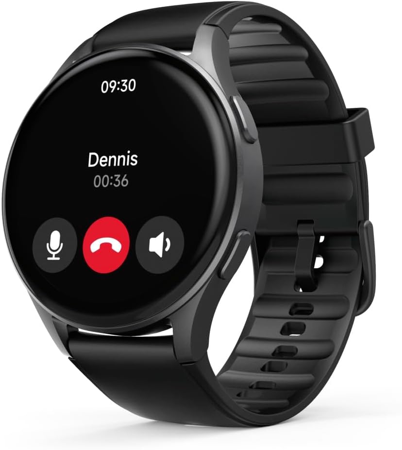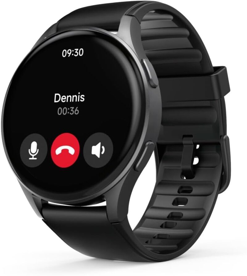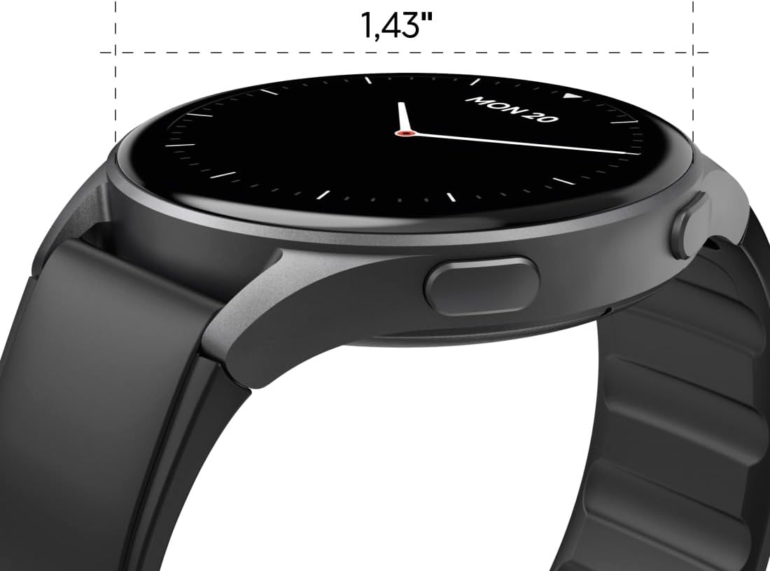 Beautiful smartwatch with touchscreen: full touch display, responsive, full colour, 1.32 inch AMOLED display, brightness adjustable, always on display mode or arm movement for activation, durable aluminium alloy, delicate case.