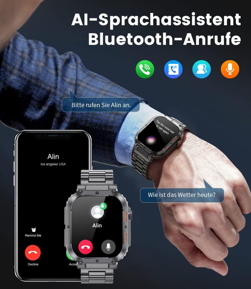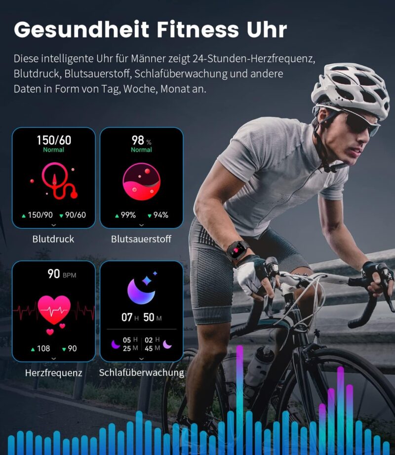 100 sports modes: the men’s fitness tracker with 100 training programs, whether you are running, cycling, climbing, surfing, swimming, rowing, football, golf or tennis, it accurately records all your movements, records your training time, your health, steps, distance, calories burned and more. The sports smart watch is absolutely perfect for your outdoor activities and adventures.
