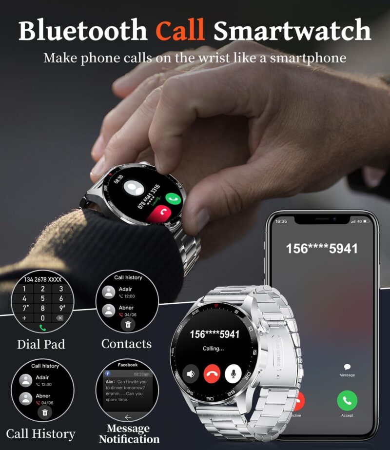 Bluetooth call and notifications: the smart watch has a built-in high-quality microphone and speaker. After it is connected to your phone via Bluetooth, you can clearly receive and make calls directly from your watch. The smart watch also supports information notifications and notifications from social networks (WhatsApp, Facebook, Instagram, Twitter, etc.). All notifications are displayed with vibration on your wrist. With this Bluetooth call smart watch, you won’t miss an important call or message.