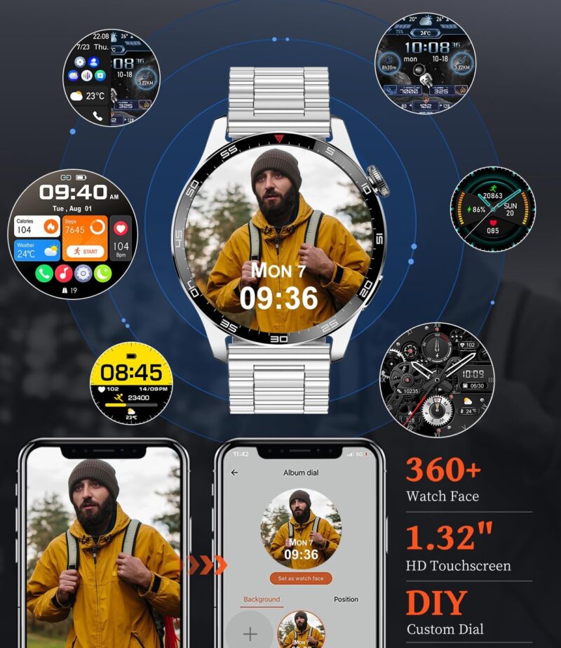1.43 inch AMOLED screen and adjustable dials: Our smart watch has a 1.43 inch AMOLED screen and an energy-saving design with a resolution of 466 x 466, which guarantees a captivating visual experience. You can also adjust the dial of your watch according to your wishes to express your unique style. Whether you choose fashionable, simple, artistic or sporty designs, our smart watch is designed to exceed your expectations.
