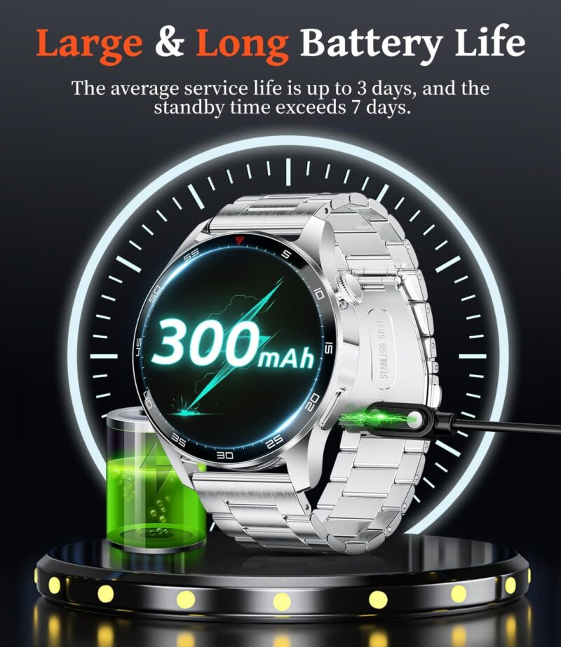 Compatibility: This fitness smart watch for men is compatible with Android 5.0+ and iOS 9.0+ smartphones. With a long battery life of 7 days in normal use and 30 days in standby mode