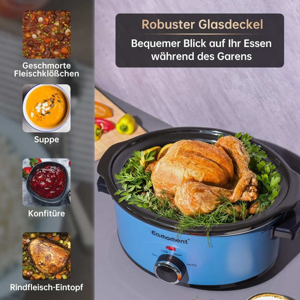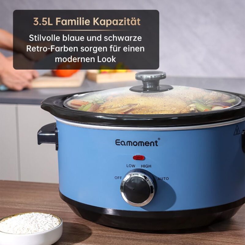 С Уред за бавно готвене Eamoment Slow Cooker 3.5L Blue можете да се насладите на максимална леснота и удобство при готвене на ястия. Този уред е идеален за всички, които искат да се насладят на вкусни и здравословни ястия, без да харчят цял ден в кухнята.