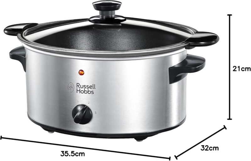 Уредът за бавно готвене Russell Hobbs Slow Cooker 3.5L е идеален за всички, които желае да се насладят на вкусни и хранителни ястия, без да прекарват часове в кухнята. Този уред е проектиран да готви храната бавно и равномерно, така че да запази всички витамини и минерали на продуктите.