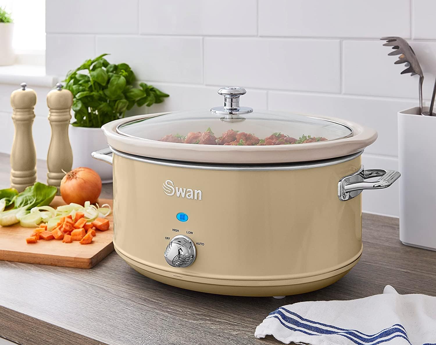 - Уред за бавно готвене Swan Retro Slow Cooker 6.5L Cream