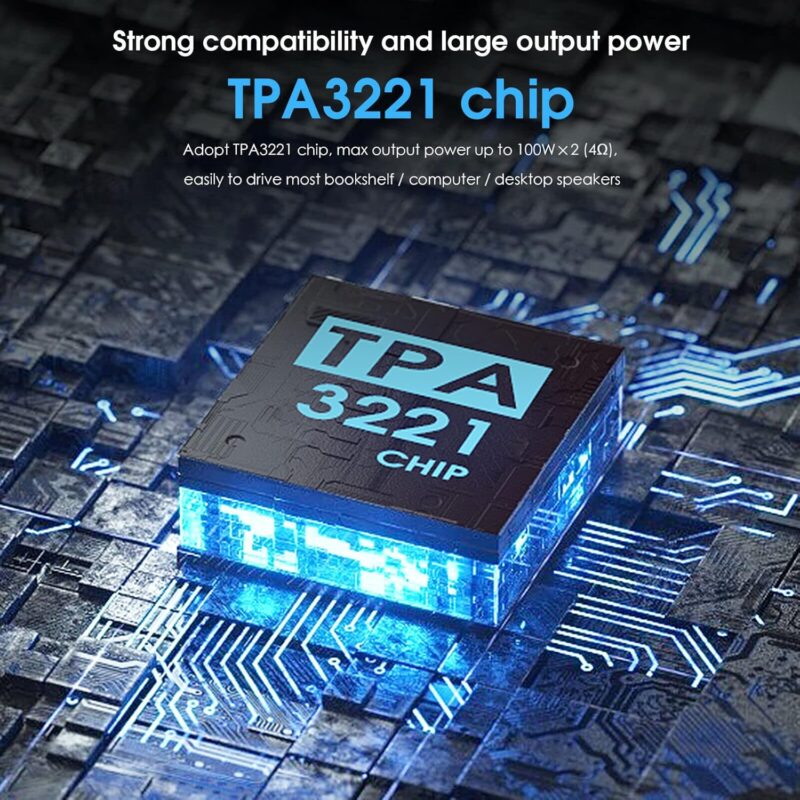 Strong output power & tone control: The amplifier uses a TPA3221 chip and reaches a maximum output power of 100W×2 (at 4Ω), easily adaptable to most bookshelf/computer/desktop speakers. With treble, mid and low tone controls, you can easily customize your preferred sound experience, presents music with heady highs and low lows and is an excellent helper for your home stereo system.