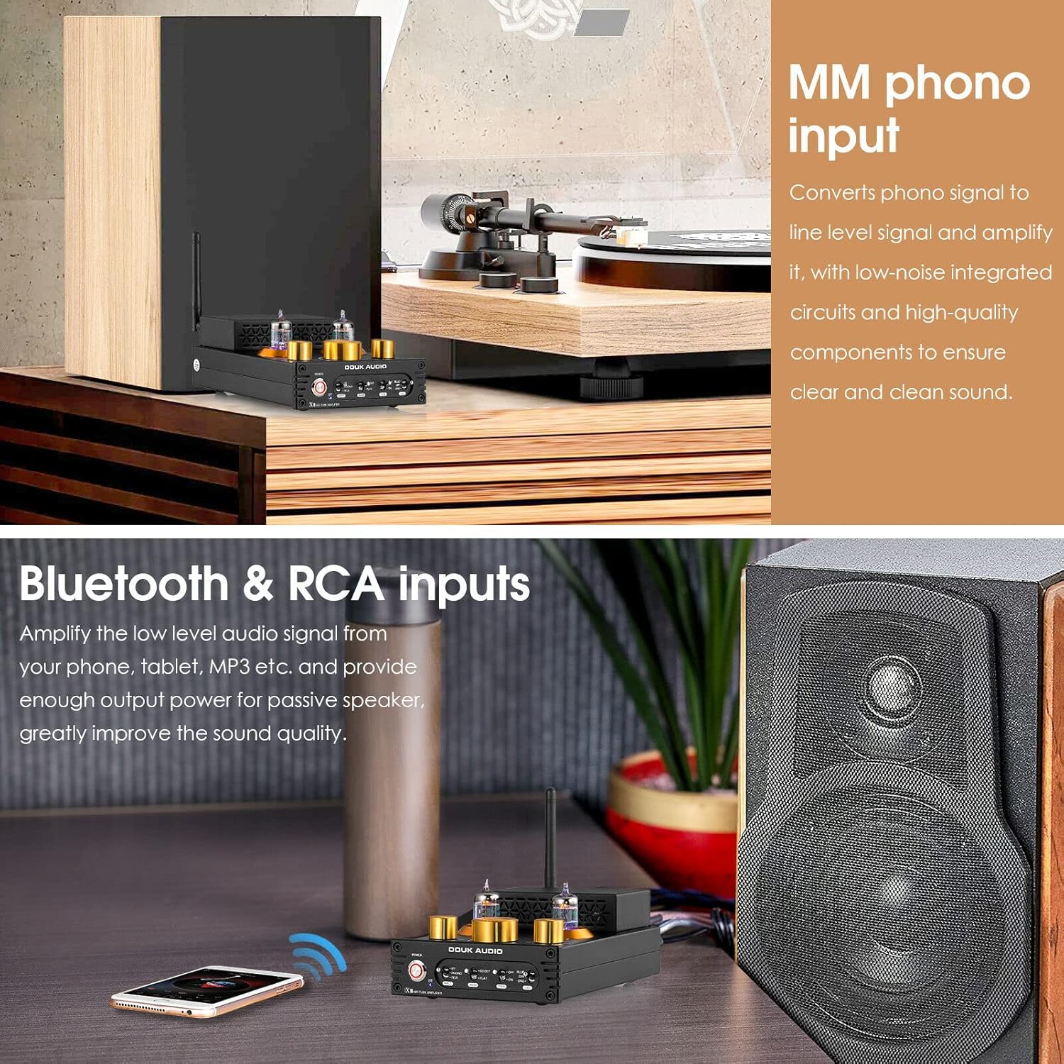 Bluetooth 5.0 & Stereo RCA: MM phono input converts phono signal into line level and amplifies it with low noise and high quality components for a clear and clean sound.