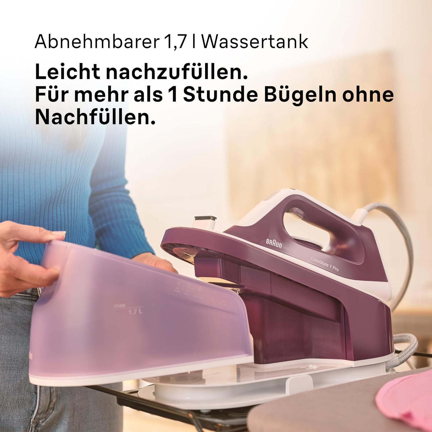 Бъдете първи, оставили отзив “Ютия с парогенератор Braun CareStyle 1 IS 1014 VI SuperCeramic Station 6 бара 2200W Purple”