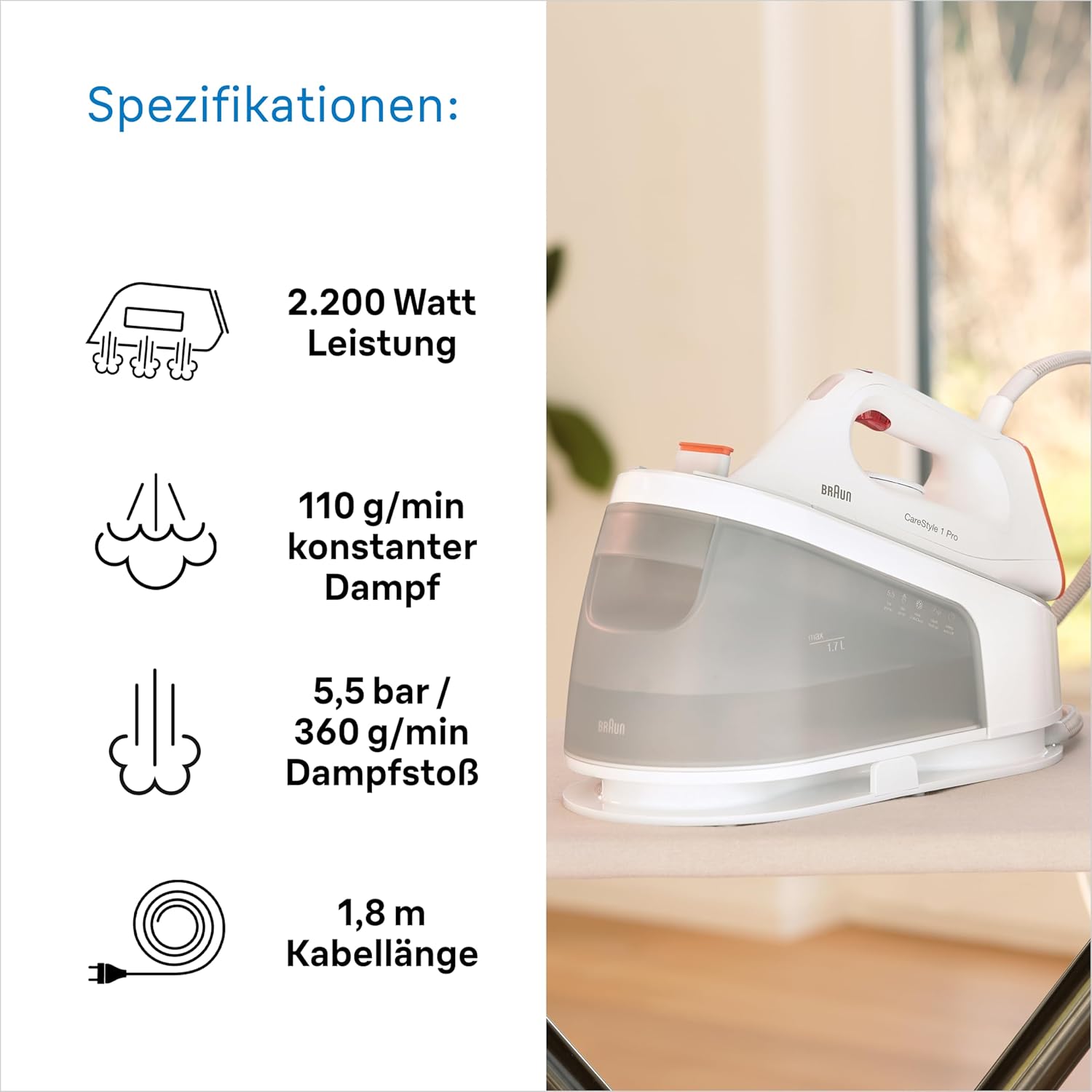 Ютия с парогенератор Braun CareStyle 1 Pro IS 1511 WH Station 5.5 бара 2200W