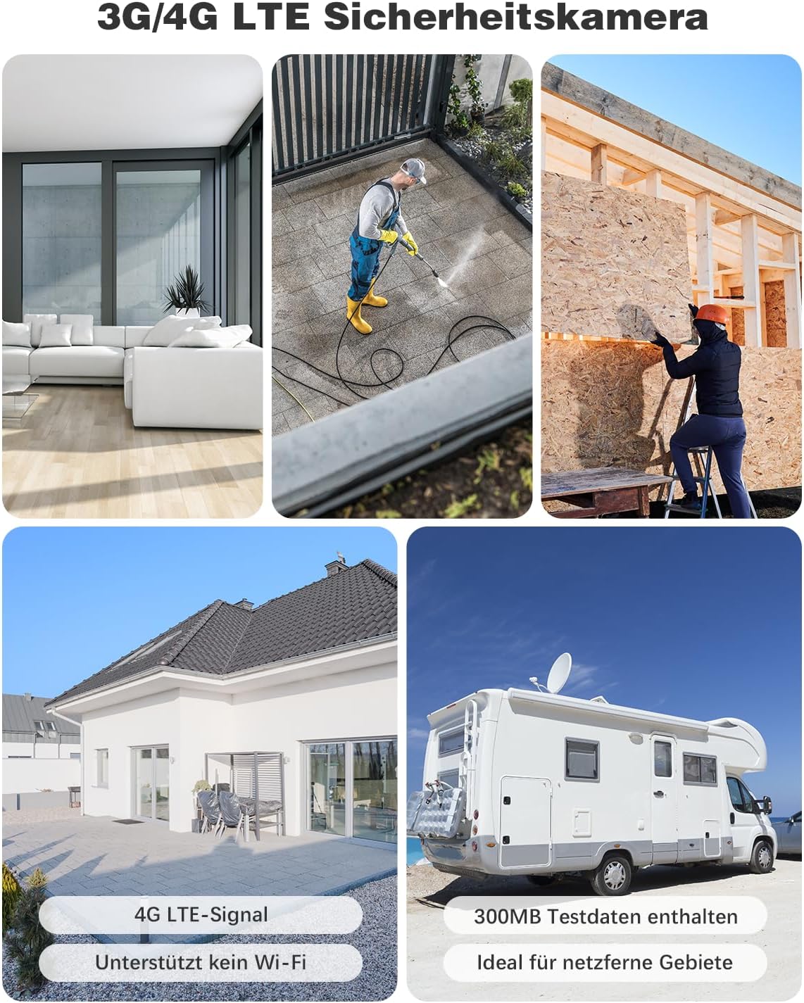 3G/4G mobile radio connection and no WiFi required: this indoor surveillance camera supports 3G/4G mobile communication, does not support WiFi, it is not only suitable for indoor areas such as living rooms, bedrooms and offices, but also outdoor areas such as temporary parking, camping, picnics. It is equipped with a Eiotclub SIM card and 300MB data volume for testing. We recommend you use the included SIM card. This SIM card has been tested many times, which has stronger compatibility.