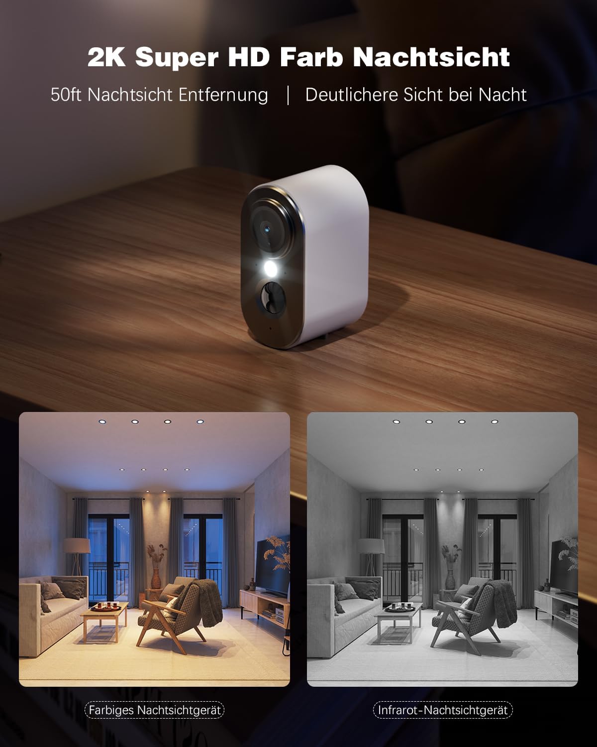 3MP HD resolution and colour/IR night vision: the camera supports 3MP HD (2304 x 1296P), much clearer than 1080P to ensure you can see ultra-clear details day and night. The indoor/outdoor surveillance cameras support color/infrared night vision. Whether in the presence of low light or complete darkness, it can ensure that objects within 50 feet can be clearly monitored, giving you the best night vision experience.