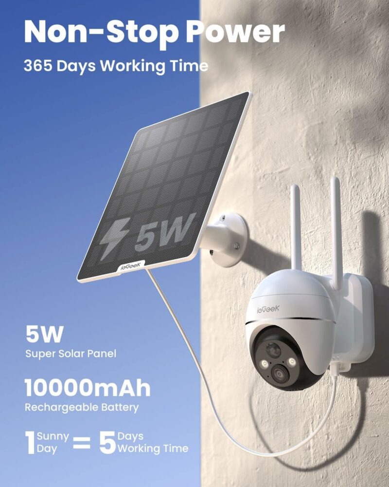 Nonstop Solar Powered & 100% Wire-Free Installation: ieGeek 4G security camera has built-in upgraded rechargeable battery and comes with solar panel which keeps the cctv camera fully charged by sunlight. It will save you hassle of taking it down and putting it on recharge!It connects to network via SIM card, you don’t need to run any network cable or install wifi router. No wifi needed ! Without messy network cable and power cable, you can easily install within 10 minutes. No wires, no hassle!