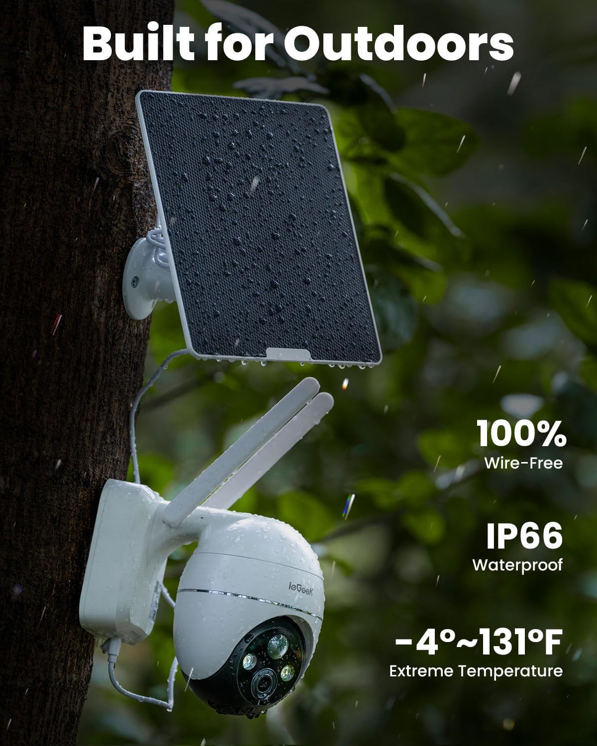 2K QHD Picture Quality & Crisp Color Night Vision: ieGeek battery outdoor camera is equipped with advanced lens, which makes it easy to recognize clear image of everything. You can monitor property in 2K crystal clear video during day and night. ieGeek no wifi camera has built-in bright spotlights, it will turn on immediately when movement is detected at night, helping you see details in color night vision more clearly and deter potential burglar. The night vision distance is up to 20 meters.