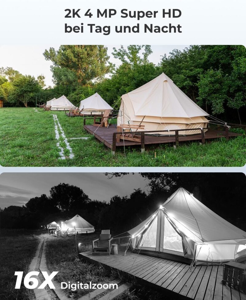 2K Super HD & 33ft Night Vision: With a high resolution of 4 MP, this wireless battery camera takes sharp images for more visual details. The infrared LEDs provide excellent image quality at night and support clear night vision up to 10 metres (33 feet).