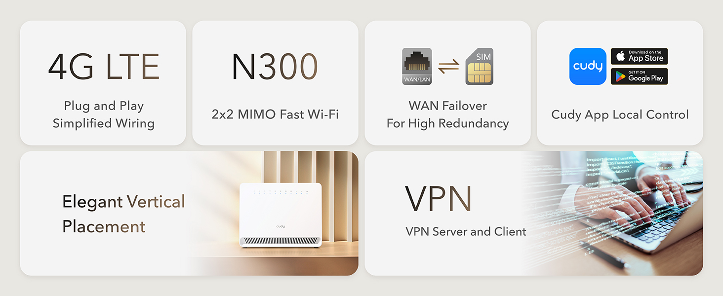 / 4G LTE Рутер Cudy LT400E 4G LTE Router SIM Card N300 WLAN WiFi 300 Mbps