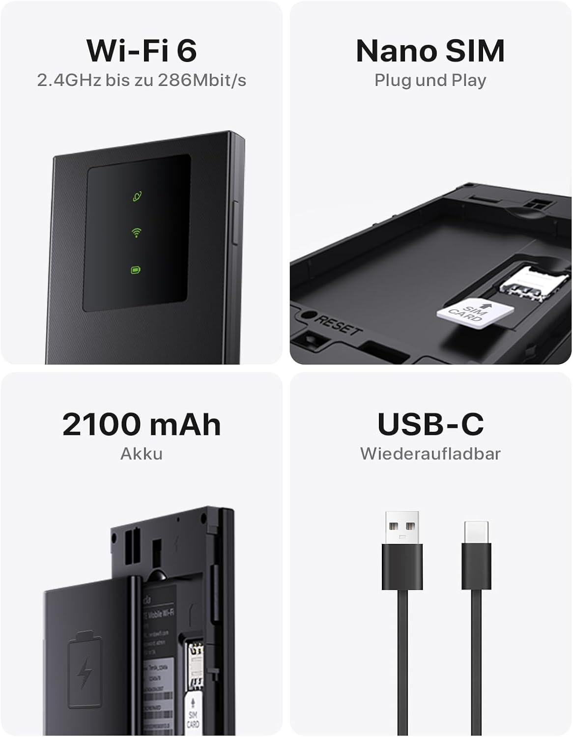Supports most SIM cards: including vodafone, O2, 1 & 1 etc. Setting: 1. Deactivate the PIN code after inserting the SIM card into the phone; 2. Set the PIN code on the web page (192.168.0.1) to the status „deactivate“; 3. Ask the APN parameters from the network operator; 4. Go abroad with roaming mode activated.