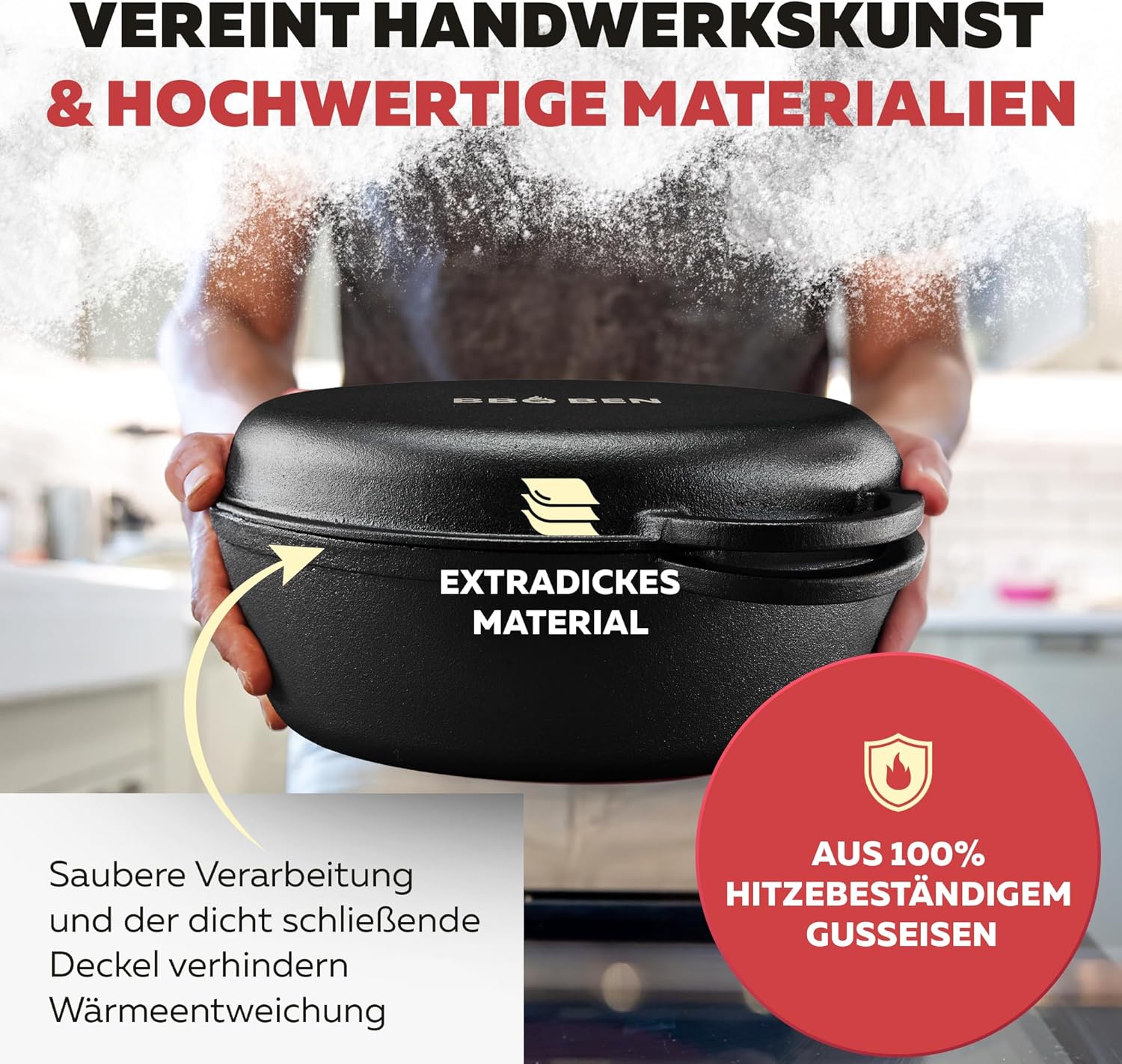 / BBQ BEN – Тенджера Dutch oven чугунена 34 см 8L Black