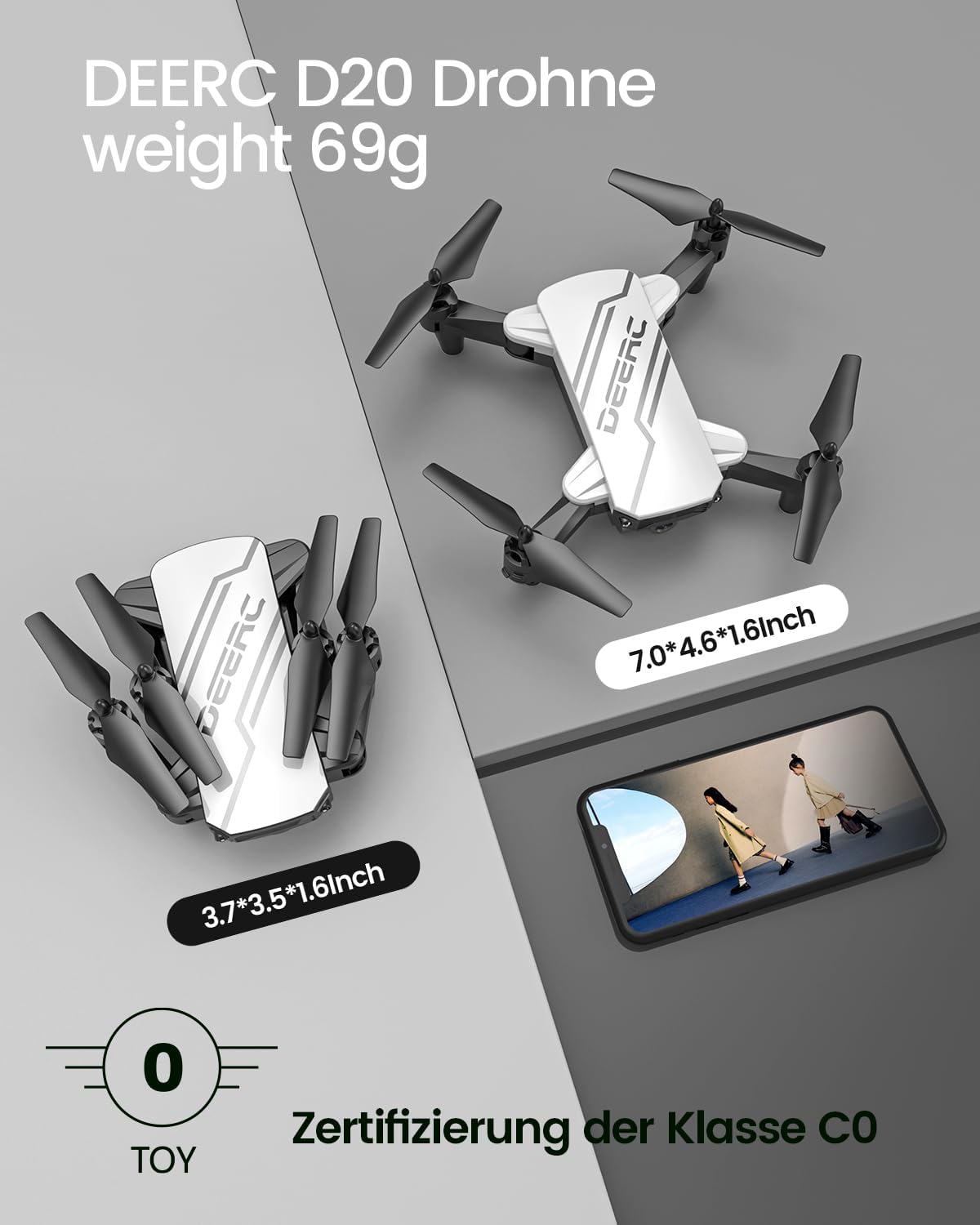 Бъдете първи, оставили отзив “DEERC D20 Дрон с камера 720P компактен и ултралек White”