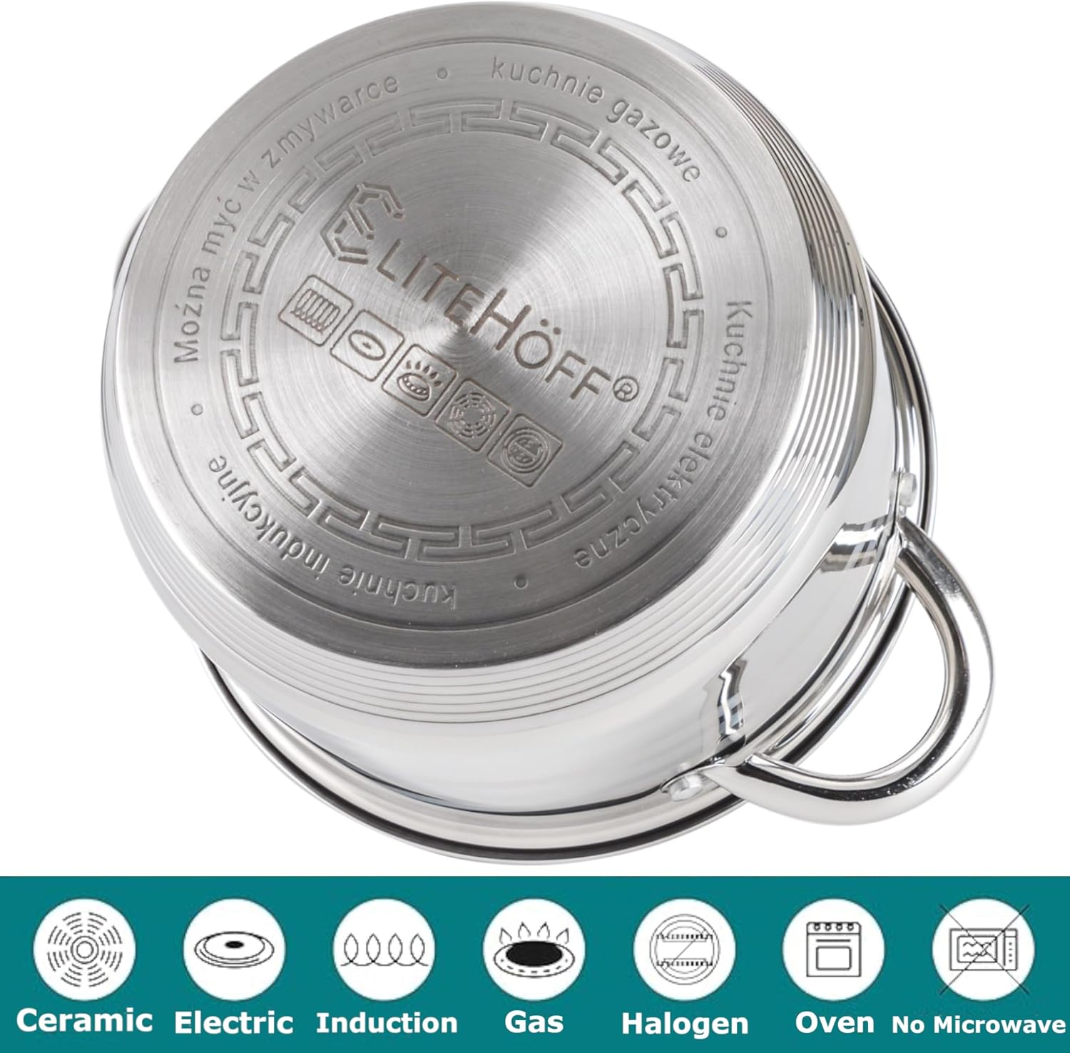 Висококачествени материали и издръжливост – изработени от висококачествена неръждаема стомана 18/10, тези тенджери предлагат отлична устойчивост на надраскване, корозия и износване. Многослойният дизайн осигурява отлична издръжливост и по-добро задържане на топлината, което гарантира безопасно и надеждно готвене в продължение на години.
