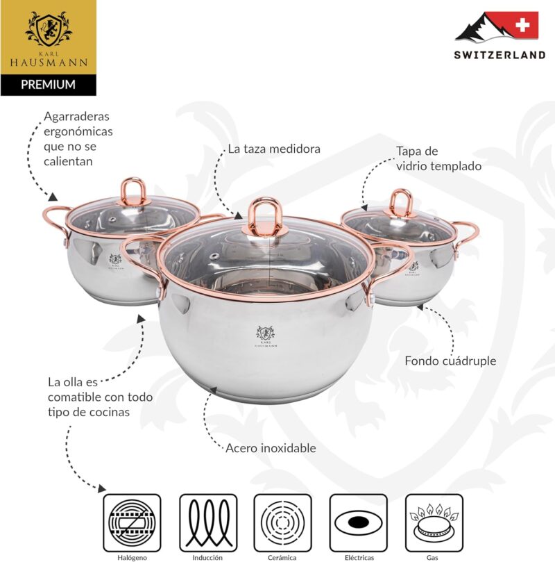 количество за KARL HAUSMANN – Комплект от 3 Тенджери неръждаема стомана