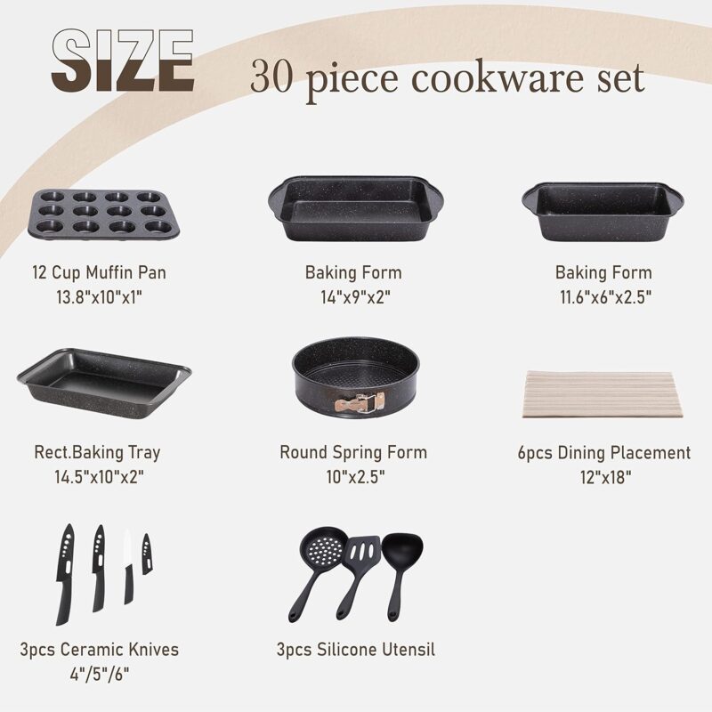 Kitchen Academy – Комплект от 30 съдове за готвене Гранит Черен