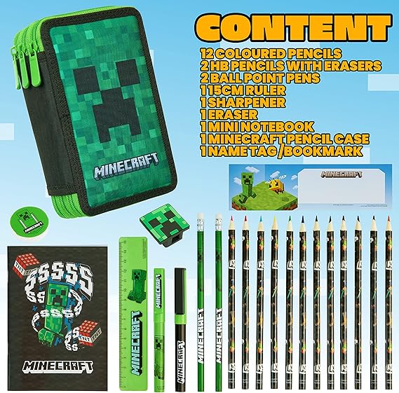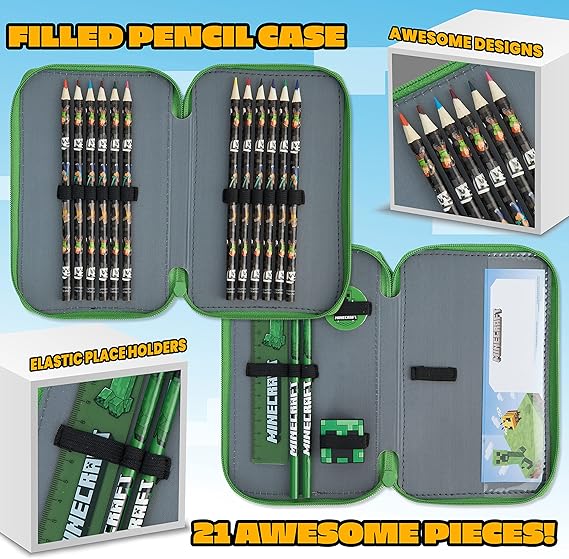 Minecraft – Кутия за рисуване за деца с цветни моливи, пастели, акварелни бои