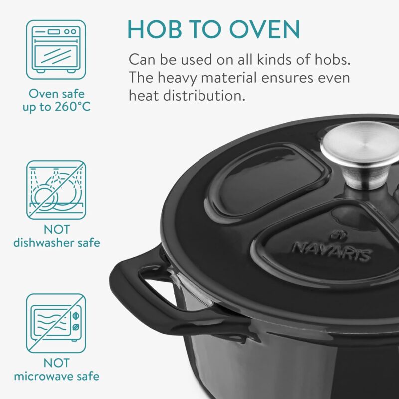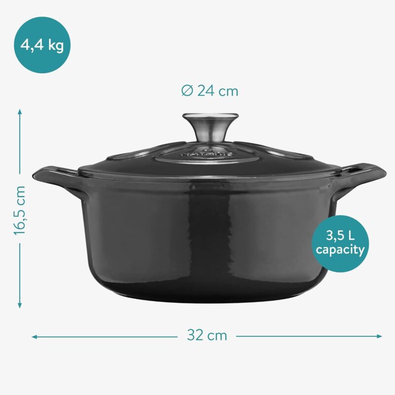 Продукт:Navaris – Тенджера Dutch oven чугунена с емайлирано покритие 24 см 3.5L Black