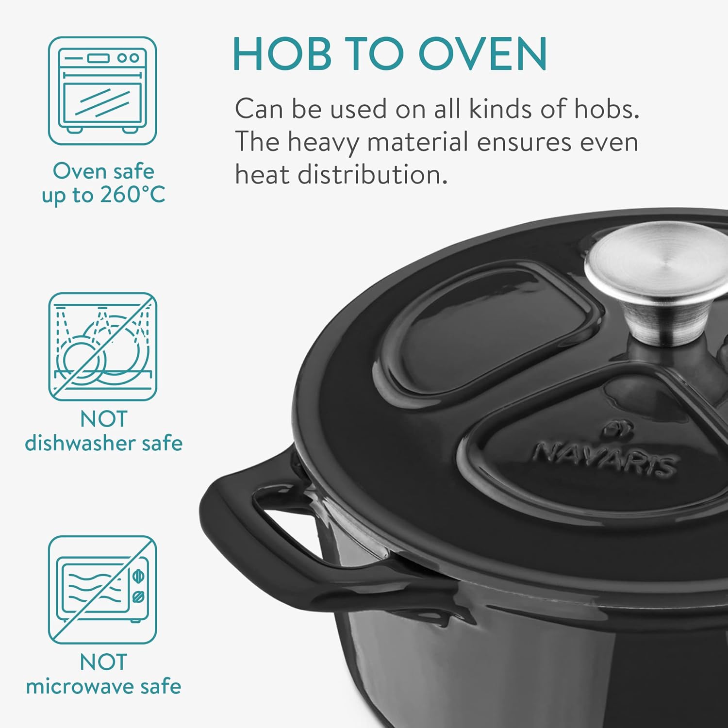 Бъдете първи, оставили отзив “Navaris – Тенджера Dutch oven чугунена с емайлирано покритие 24 см 3.5L Black”