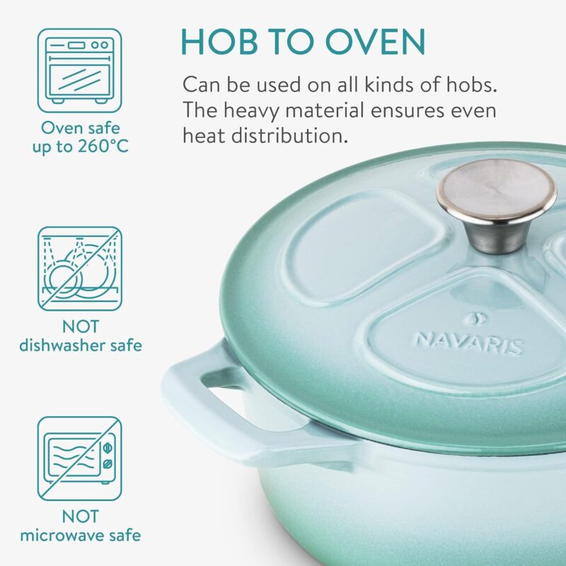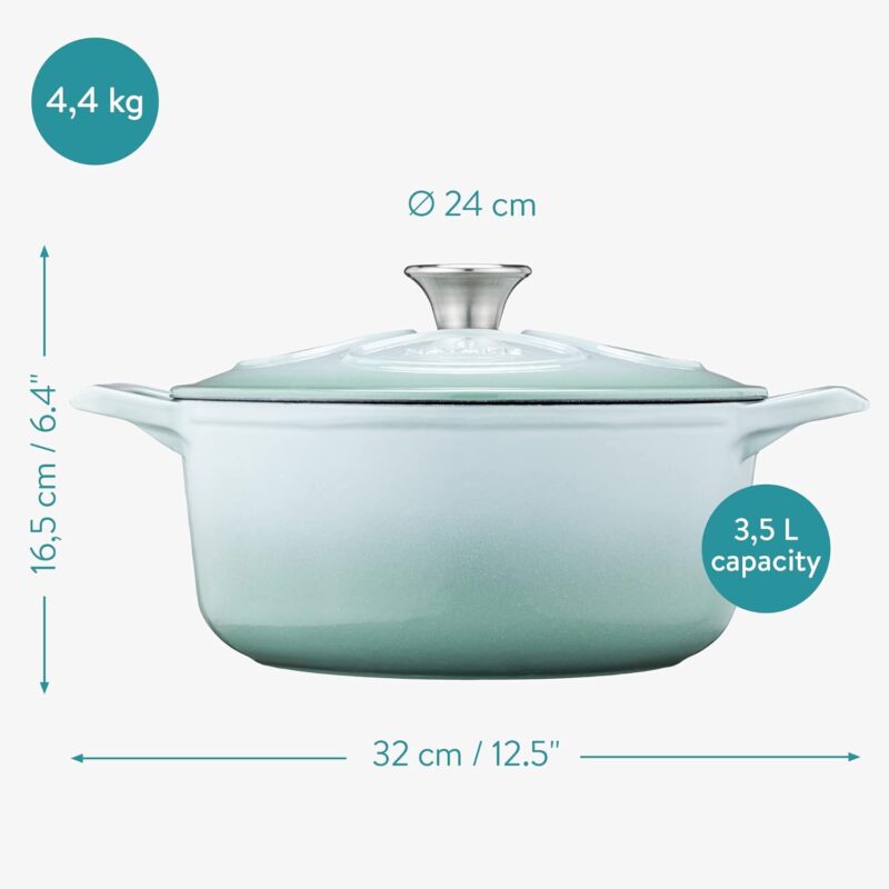 / Navaris – Тенджера Dutch oven чугунена с емайлирано покритие 24 см 3.5L Mint Green
