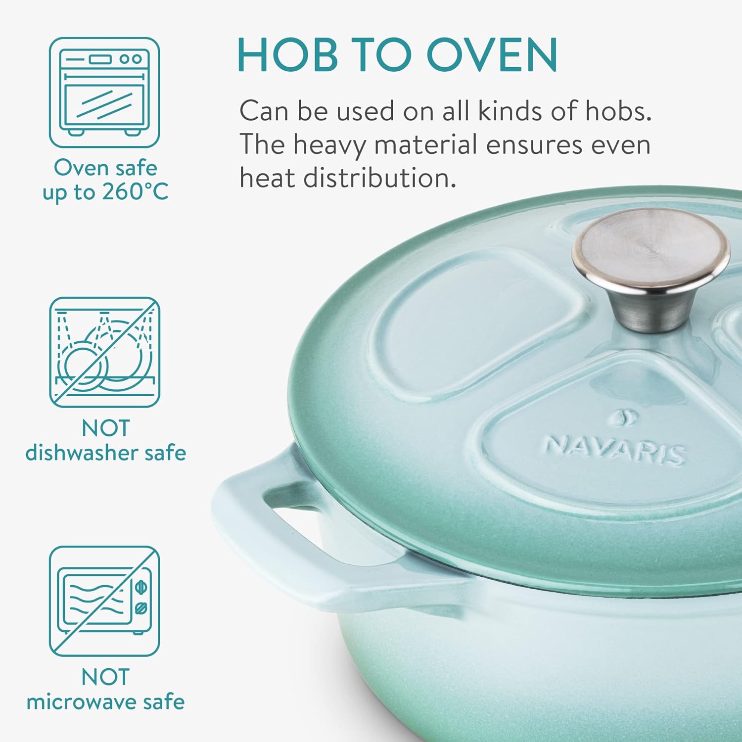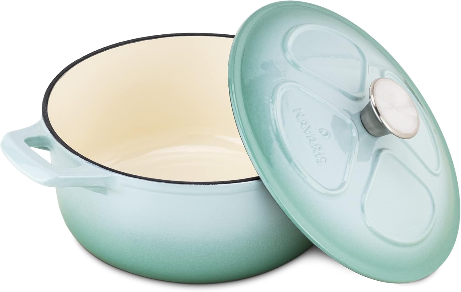 Navaris – Тенджера Dutch oven чугунена с емайлирано покритие 24 см 3.5L Mint Green