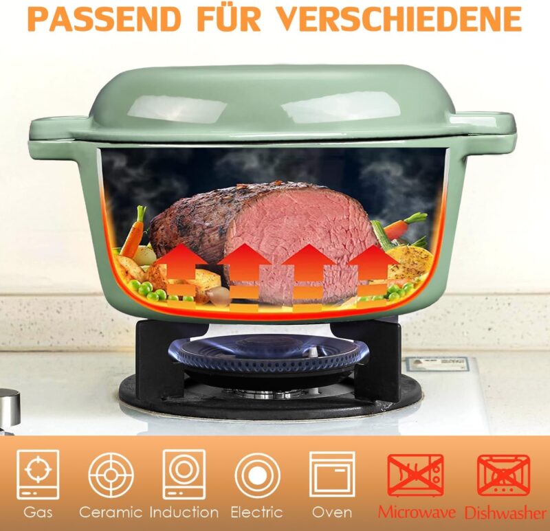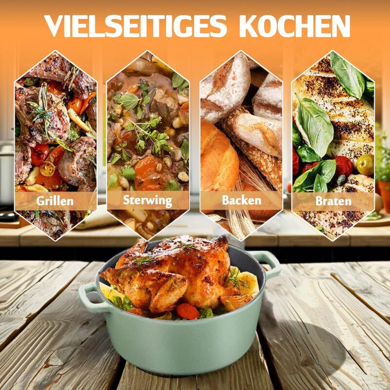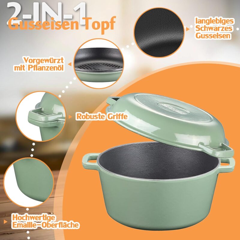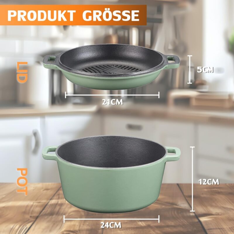 / NSIRONS – Чугунена Тенджера Dutch oven 2 в 1 с емайлирано покритие 5L Green