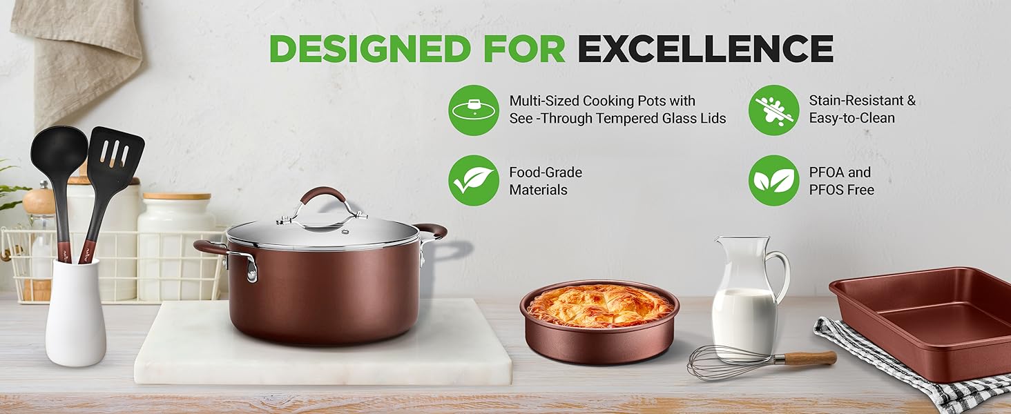 NutriChef Basic – Комплект от 20 съдове за готвене Кафяв