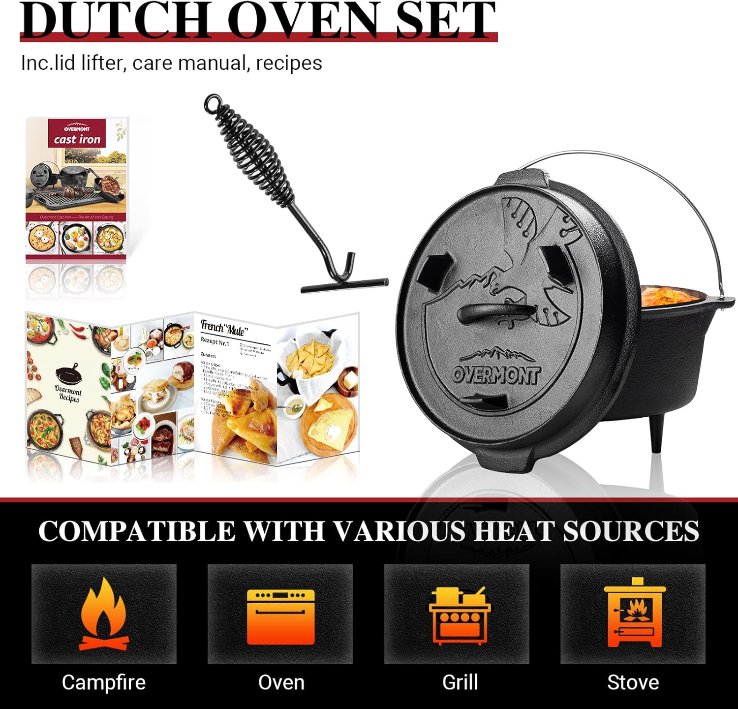 / OVERMONT – Тенджера Dutch oven чугунена за къмпинг 4.2L