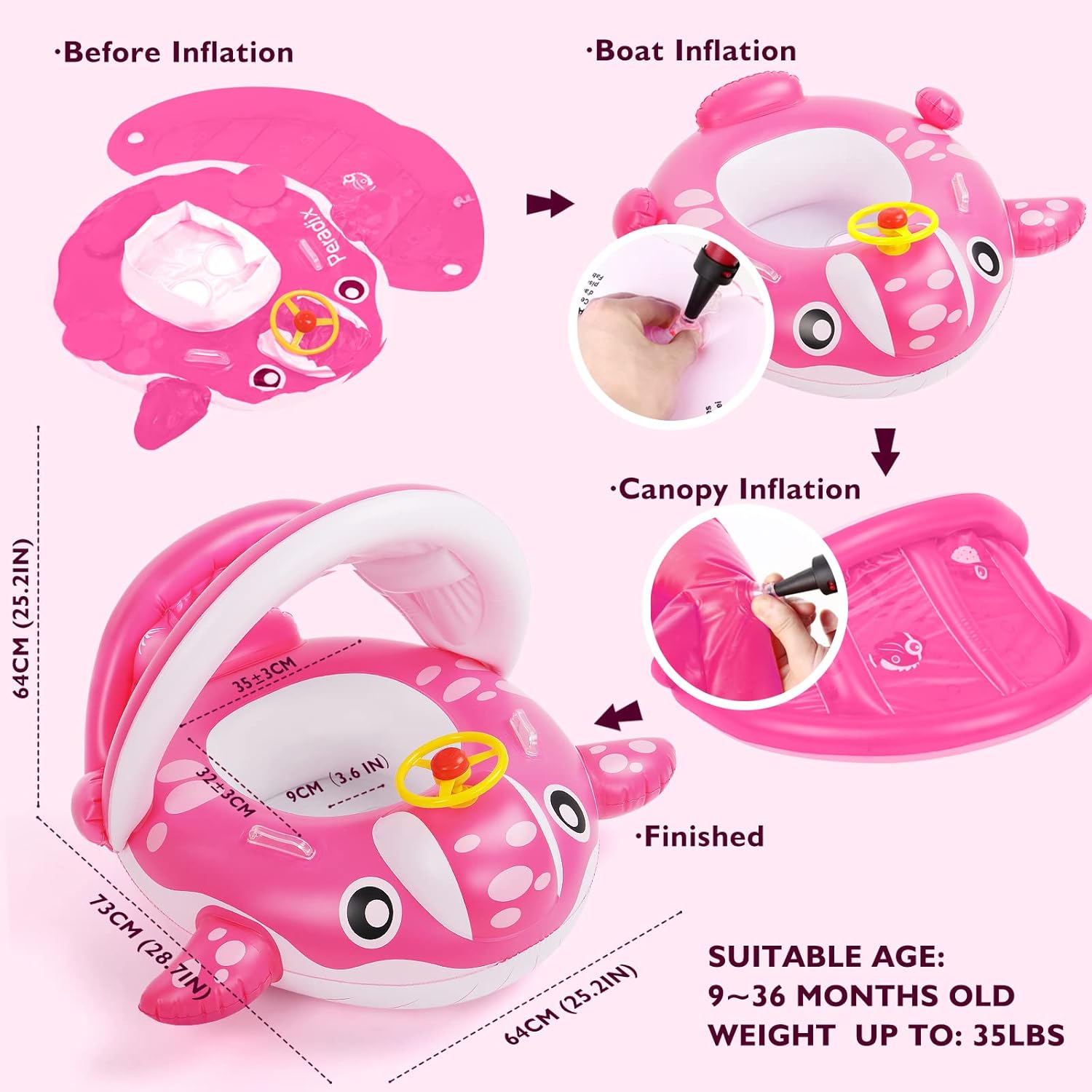 Бъдете първи, оставили отзив “Peradix – Детски надуваем пояс с подвижен сенник розов”