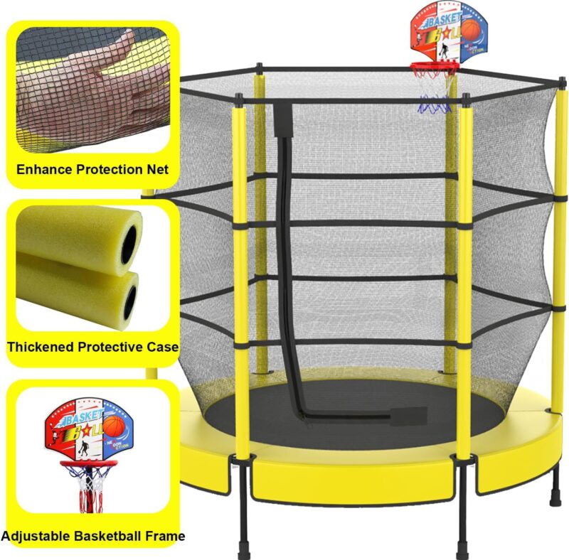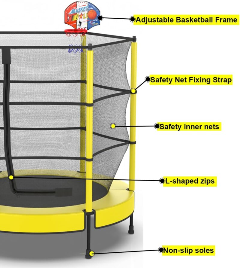 PILIN – Детски батут с мрежа и аксесоари 145 cm Жълт