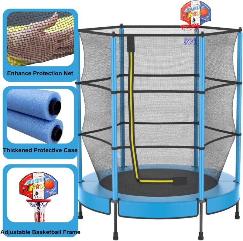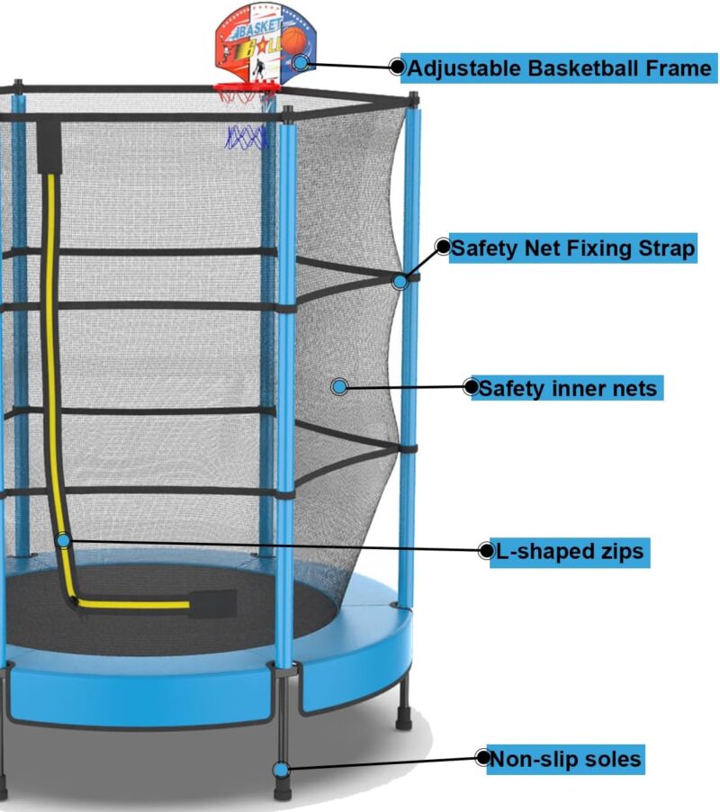 PILIN – Детски батут с мрежа и аксесоари 145 cm Син