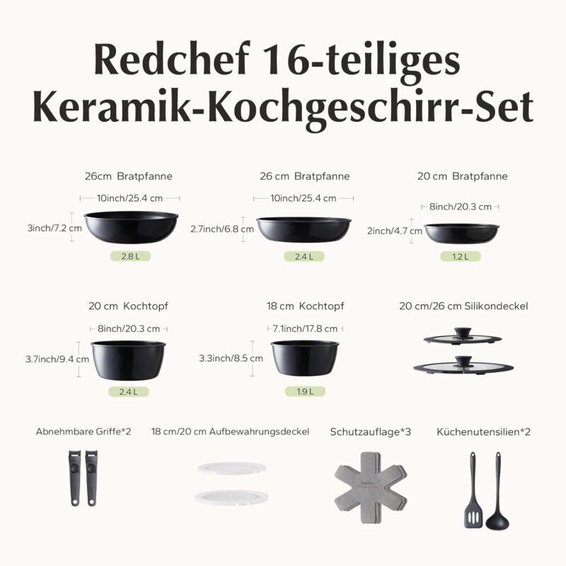 Redchef – Комплект от 16 части съдове за готвене Ceramic Black